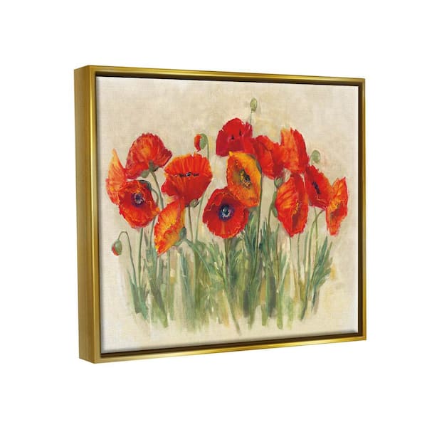 Red Poppy Florals Soft Green Meadow Grass by Carol Rowan Floater Frame Nature Wall Art Print 25 in. x 31 in.