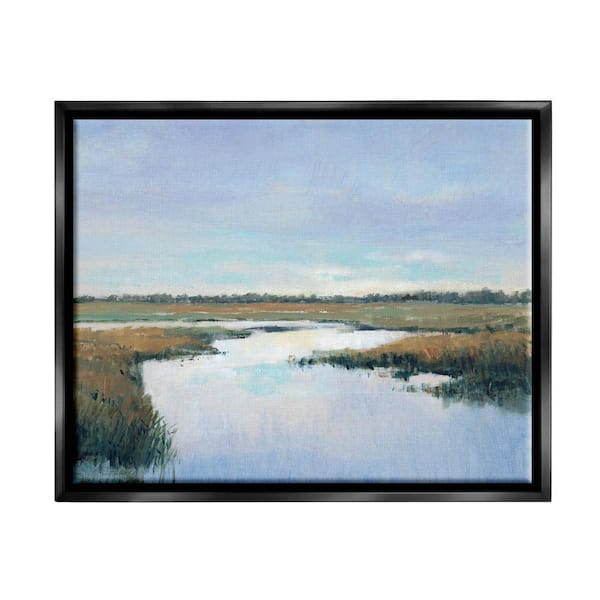 Rural River Horizon Landscape Design by Tim OToole Floater Framed Nature Art Print 31 in. x 25 in.