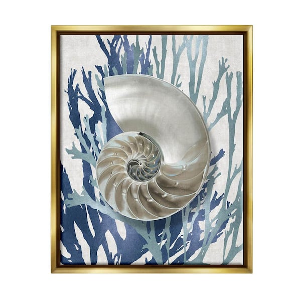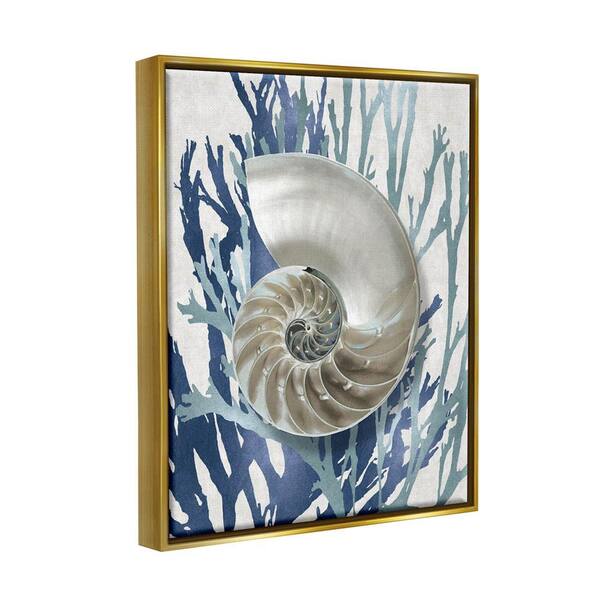 Shell Coral Beach Blue Design by Caroline Kelly Floater Frame Nature Wall Art Print 17 in. x 21 in. .