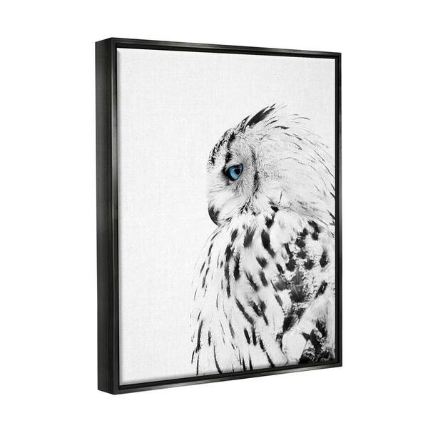 Snow Owl White Feathers Peering Blue Eyes by Design Fabrikken Floater Frame Animal Wall Art Print 25 in. x 31 in.
