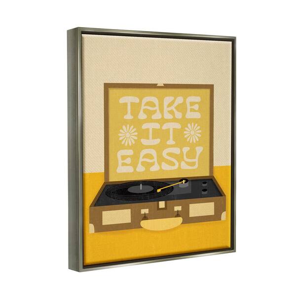 Take it Easy Motivational Boho Record Player by Jaylnn Heerdt Floater Frame Typography Wall Art Print 21 in. x 17 in.