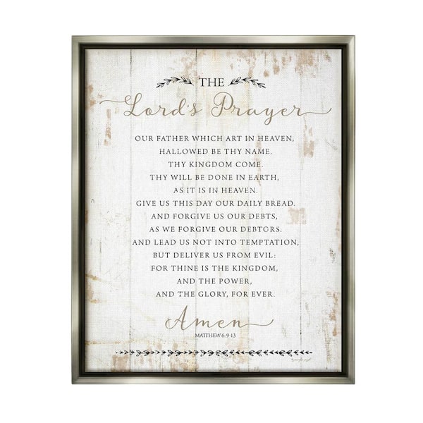 The Lords Prayer Our Father Distressed Wood by Jennifer Pugh Floater Frame Typography Wall Art Print 21 in. x 17 in.