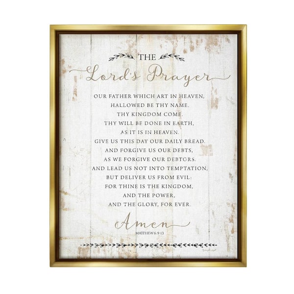 The Lords Prayer Our Father Distressed Wood by Jennifer Pugh Floater Frame Typography Wall Art Print 31 in. x 25 in.