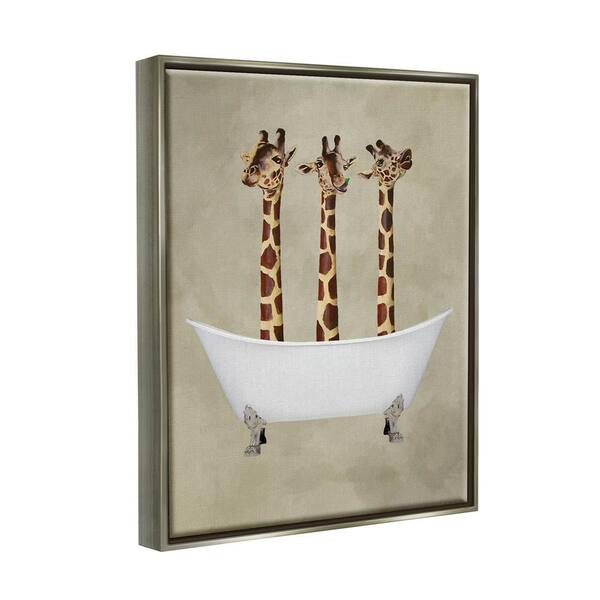 Three Giraffes In A Bathtub by Coco de Paris Floater Frame Animal Wall Art Print 21 in. x 17 in.