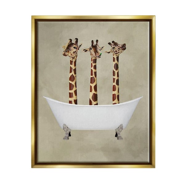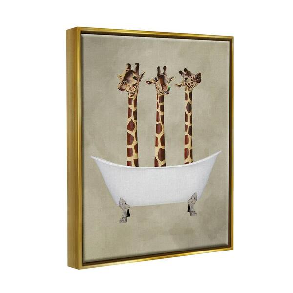 Three Giraffes In A Bathtub by Coco de Paris Floater Frame Animal Wall Art Print 31 in. x 25 in.