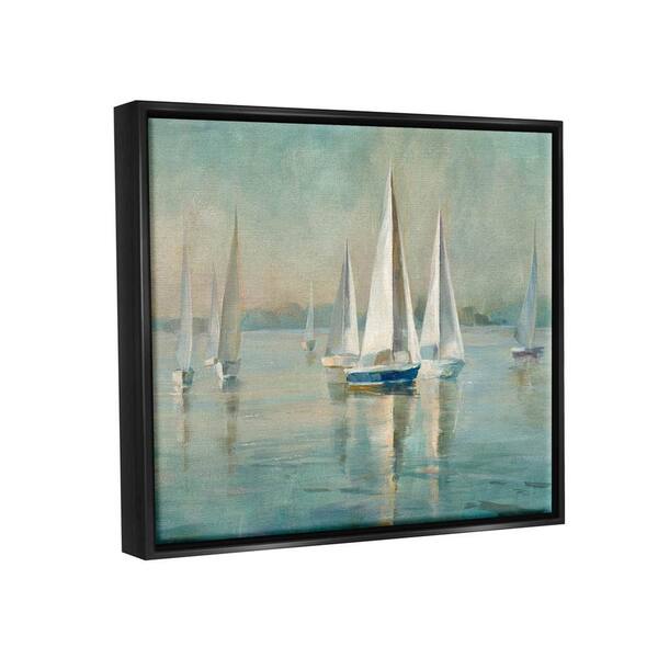 Traditional Sailboats Lake Relaxed Nautical Painting by Danhui Nai Floater Frame Nature Wall Art Print 25 in. x 31 in. .