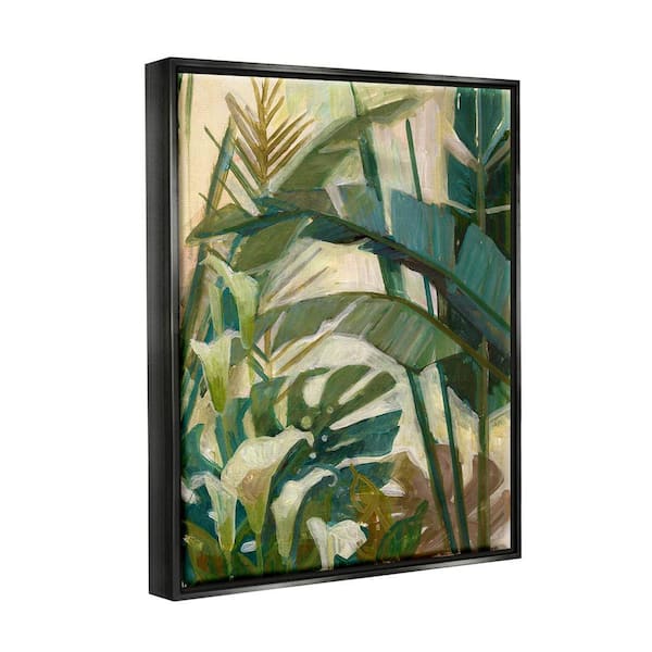 Tropical Jungle Plant Leaves Design by Elaine Vollherbst-Lane Floater Framed Nature Art Print 21 in. x 17 in.