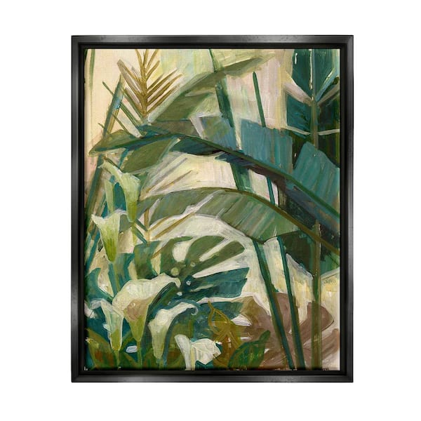Tropical Jungle Plant Leaves Design by Elaine Vollherbst-Lane Floater Framed Nature Art Print 31 in. x 25 in.