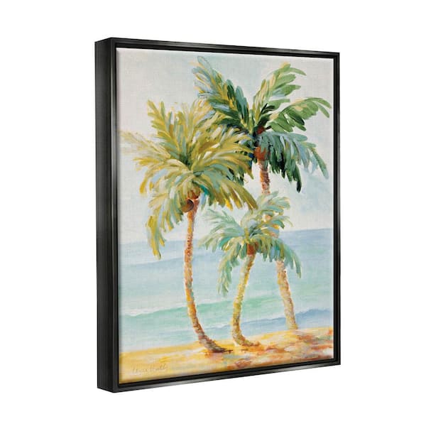 Tropical Palm Trees on Coastal Beach Sand by Lanie Loreth Floater Frame Nature Wall Art Print 17 in. x 21 in.