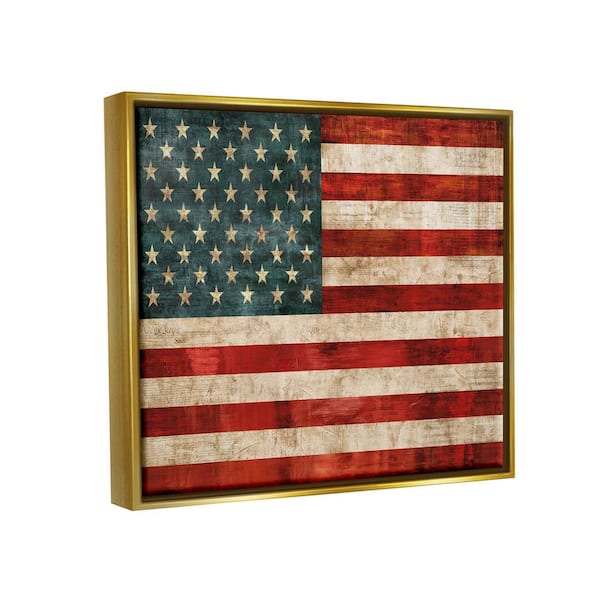 US American Flag Wood Textured Design by Luke Wilson Floater Frame Country Wall Art Print 25 in. x 31 in. .