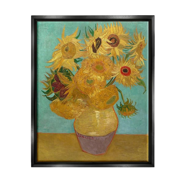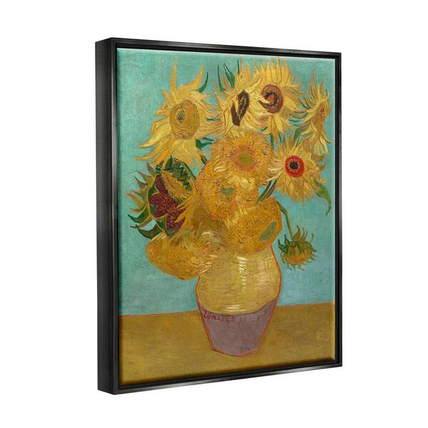 Van Gogh Sunflowers Post Impressionist Painting by Vincent Van Gogh Floater Frame Nature Wall Art Print 21 in. x 17 in.