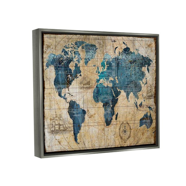 Vintage Abstract World Map Design by Art Licensing Studio Floater Frame Typography Wall Art Print 31 in. x 25 in.