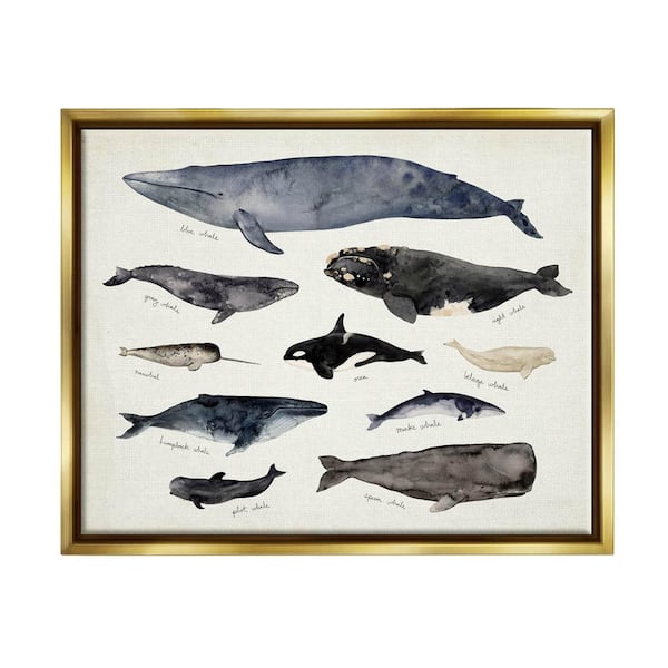 Vintage Nautical Chart of Whales Ocean Life by Victoria Barnes Floater Frame Animal Wall Art Print 25 in. x 31 in.