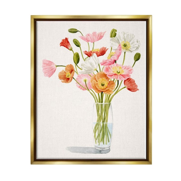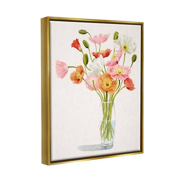 Vivid Poppies Glass Floral Bouquet Arrangement by Grace Popp Floater Frame Nature Wall Art Print 21 in. x 17 in.