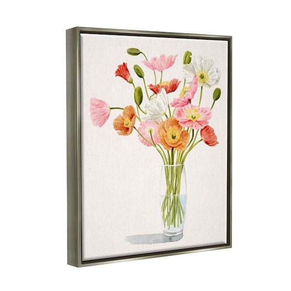 Vivid Poppies Glass Floral Bouquet Arrangement by Grace Popp Floater Frame Nature Wall Art Print 21 in. x 17 in.