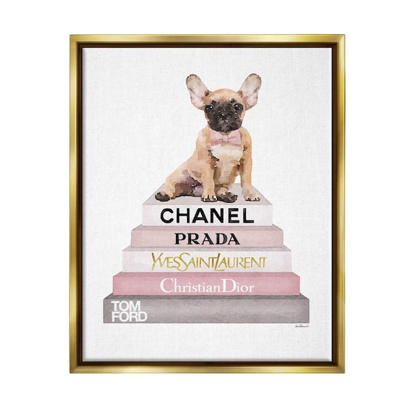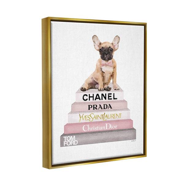 Watercolor High Fashion Bookstack French Bulldog by Amanda Greenwood Floater Frame Animal Wall Art Print 17 in. x 21 in.