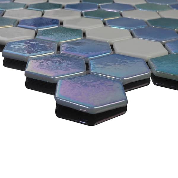 Glass Tile LOVE Hex 11 in. x 16 in. Glossy First Sight Blue White Mix Mosaic for Wall and Floor Tile(10.76 sq. ft./Case)