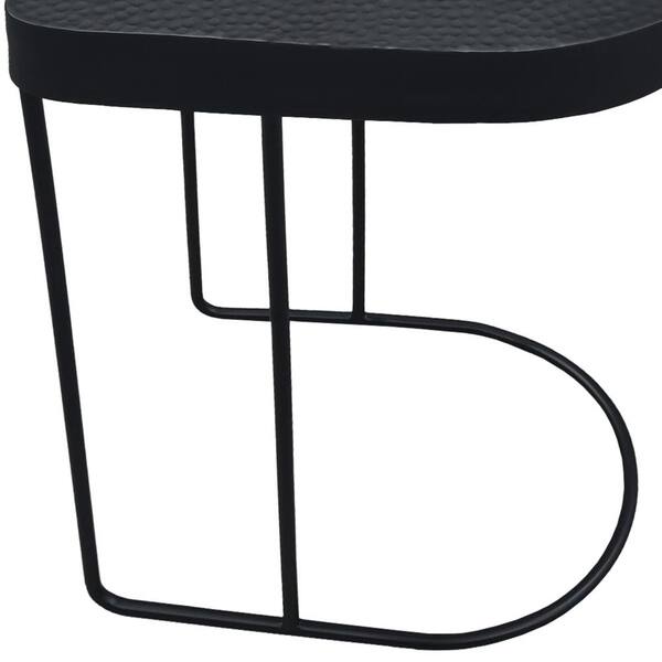 13 in. Black U-Shaped Metal End/Side Table with Unique Hammered Design