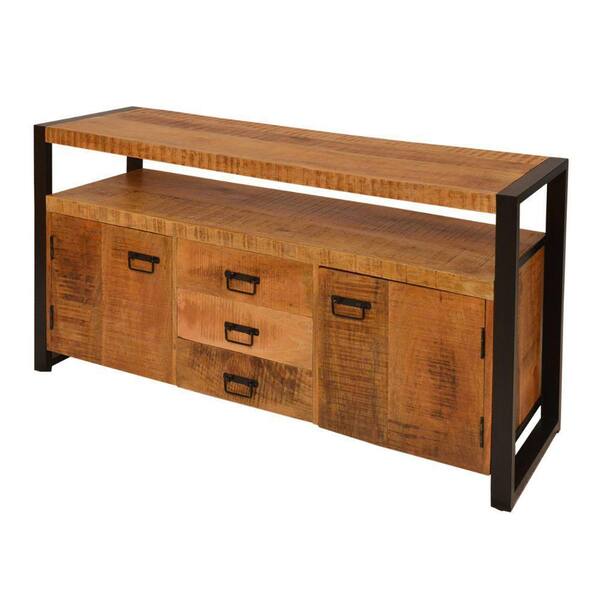 16 in. Brown and Black Mango Wood Media Console TV Stand with 3-Drawers and 2-Door