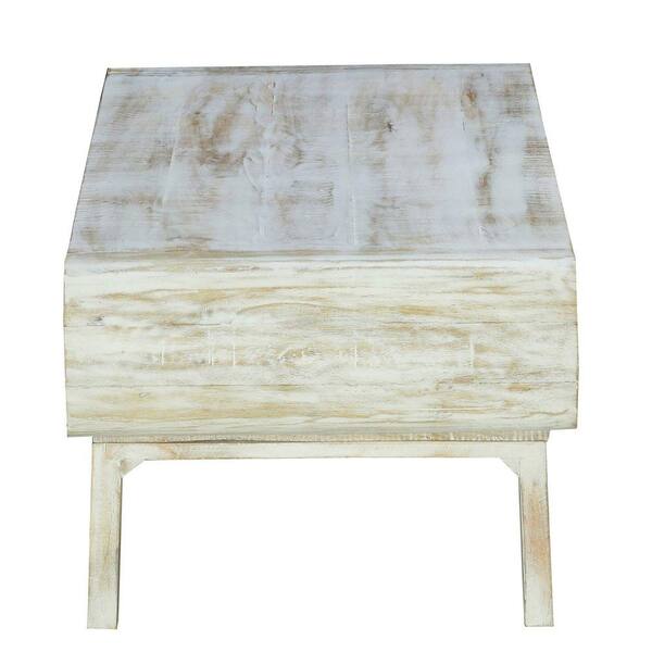 20 in. Antique White Handcrafted Rectangular Mango Wood Coffee Table with 2-Striped Drawers
