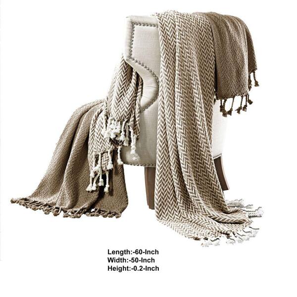 Calabria Herringbone Brown and White Cotton Throw (Set of 2)
