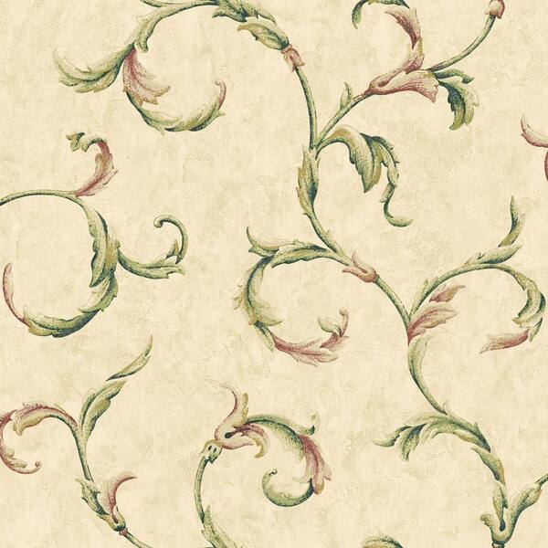 56 sq. ft. Green and Red Majestic Scroll Wallpaper-DISCONTINUED
