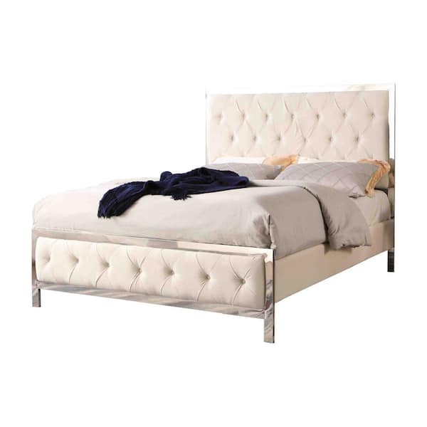 Theresa Upholstered Beige California King Tufted Panel Bed