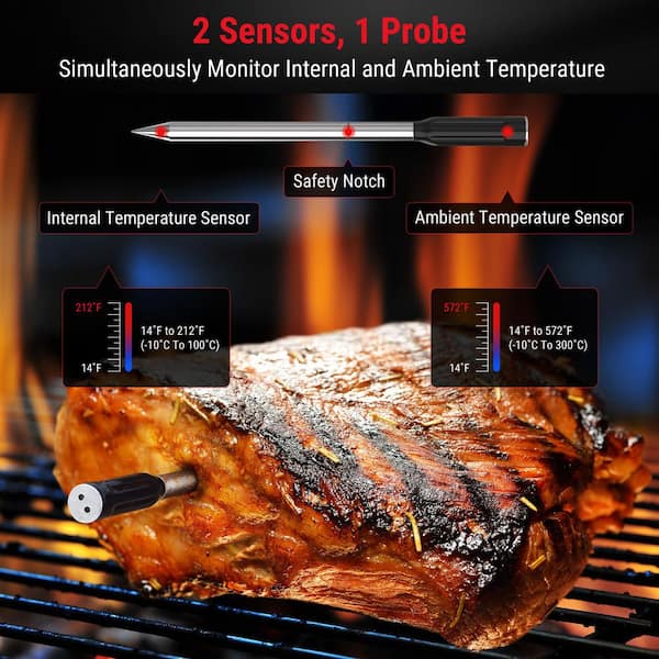 • 500 ft. wireless range facilitates remote cooking monitoring