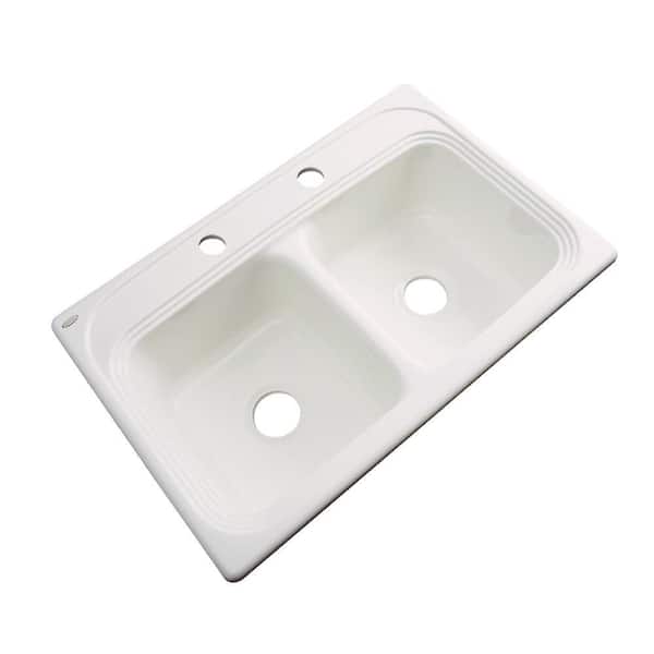 Chesapeake Drop-In Acrylic 33 in. 2-Hole Double Bowl Kitchen Sink in Bone