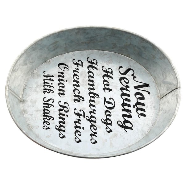 Industrial Luxe "Now Serving" Galvanized Serving Bowl