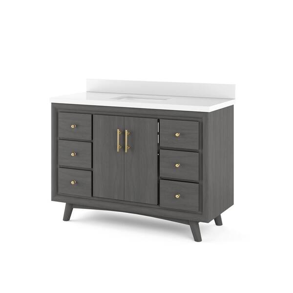 Preston 48 in. W x 20 in. D Bath Vanity in Antique Grey with Quartz Stone Vanity Top in White with White Basin