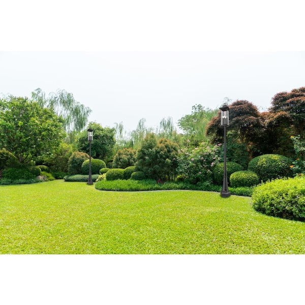 Tiberius 116.75 in. Black Weather Resistant 6 Light Outdoor Post Mounted Fixture with Clear Seedy Glass Shade