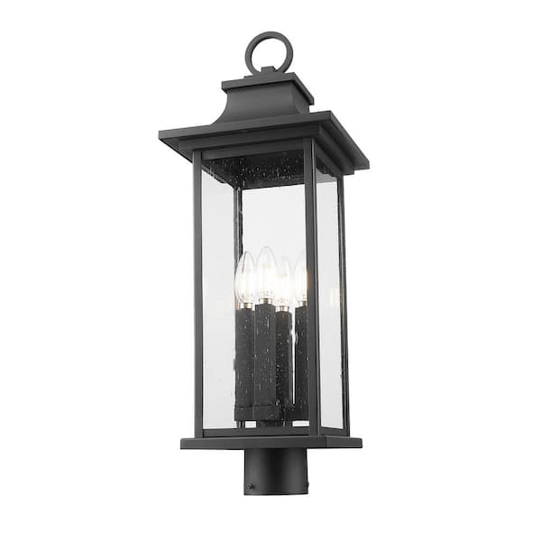 Tiberius 4 Light Black Aluminum Weather Resistant Hardwired Outdoor Post Light with No Bulbs Included