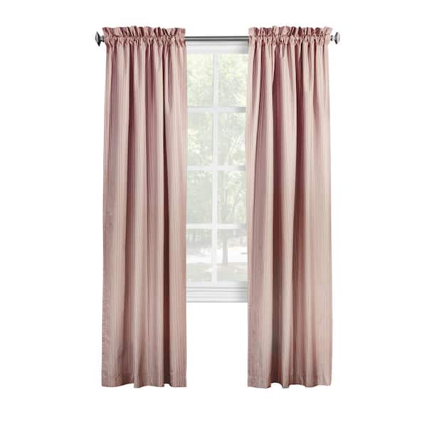 Ticking Stripe Burgundy Polyester Smooth 40 in. W x 72 in. L Rod Pocket Indoor Room Darkening Curtain (Double-Panels)