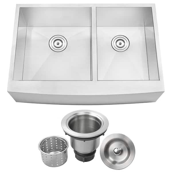 Bryce Zero Radius Farmhouse Apron Front 16-Gauge Stainless Steel 33 in. Double Basin Kitchen Sink with Basket Strainer