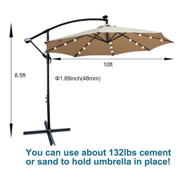 10 ft. Steel Market Solar Tilt Patio Umbrella in Tan with LED Light and Cross Base