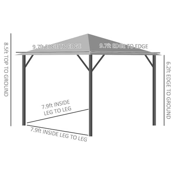 10 ft. x 10 ft. Gray Patio Gazebo Canopy with Sidewalls and Vented Roof