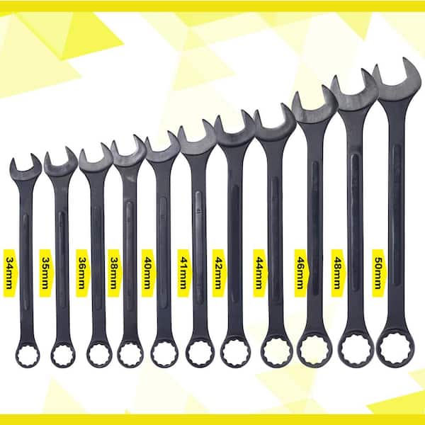 11-Piece Black Carbon Steel Extra Large Jumbo Combination Wrench Set (Pouch Included)