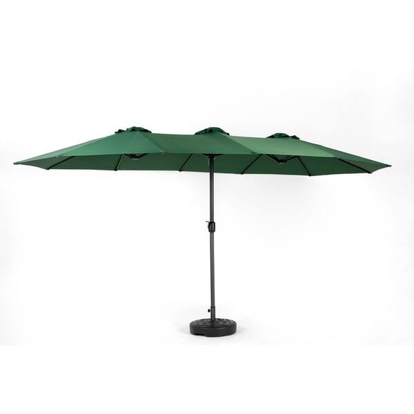 14.8 ft. x 8.8 ft. Steel Double-Sided Market Tilt Patio Umbrella in Dark Green with Base