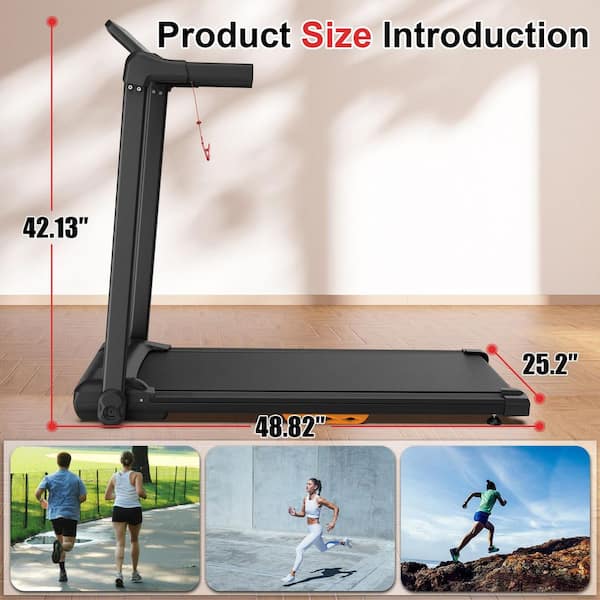 2.5 HP Black Metal Foldable Electric Treadmill with Safety Key, LED Display, Pad/Phone Holder and Inclines