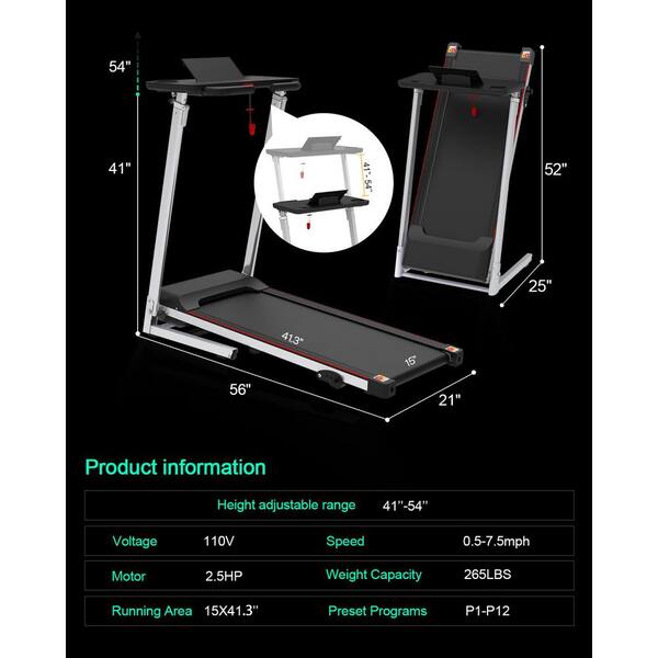 2.5 HP Black Metal Foldable Electric Treadmill with Safety Key, LED Display and Inclines