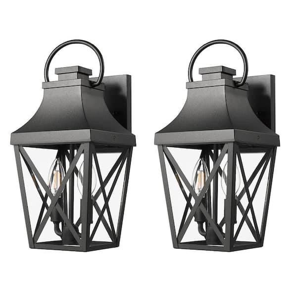 2-Pack 16 in. 2-Light Black Outdoor Hardwired Wall Lantern Sconce with No Bulbs Included