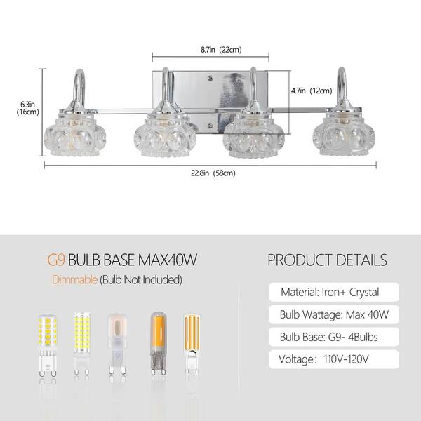 22.8 in. 4-Light Brushed Nickel Vanity Light Bar (Not Bulbs Included)