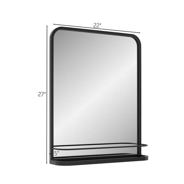 22 in. W x 27 in. H Modern Rectangular Framed Black Hook Wall Bathroom Vanity Mirror with Shelf