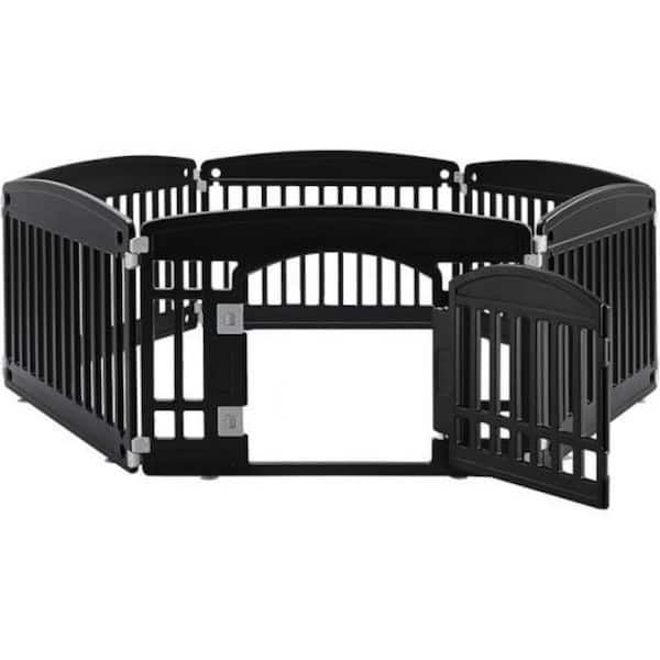 24 in. H 6-Panel Black Plastic Portable Garden Fence Pet Fence with Door