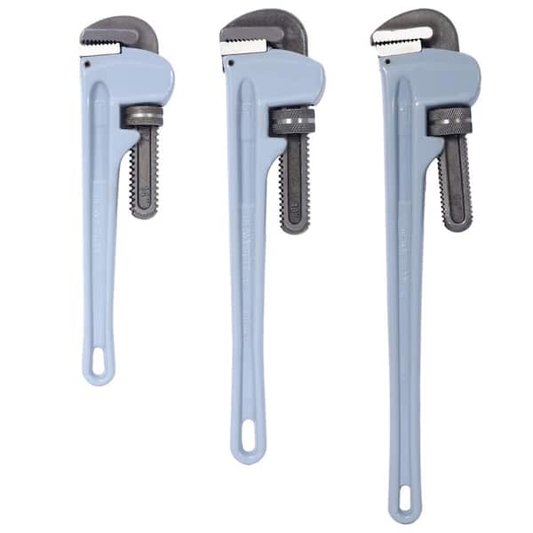 3-Piece 14/18/24 in. Light Gray Aluminum Heavy Duty Straight Pipe Wrench for Water Pipes, Automotive Repairs