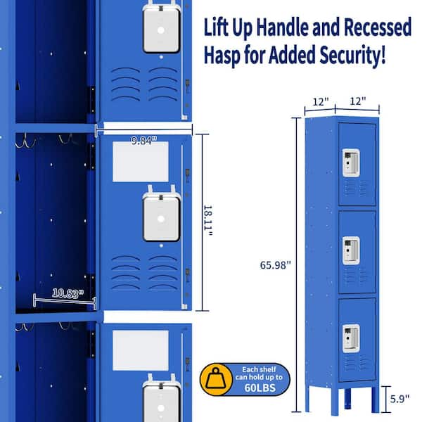 3-Tier 66 in. H Metal Heavy-Duty Storage Cabinet Locker in Blue with 3 Doors and Keys