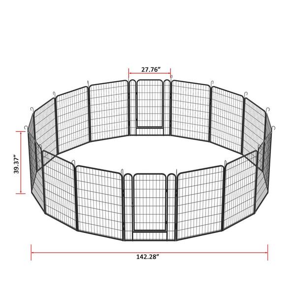 39.37 in. 16 Panels Black Metal Heavy Duty Portable Garden Fence Pet Fence with Door