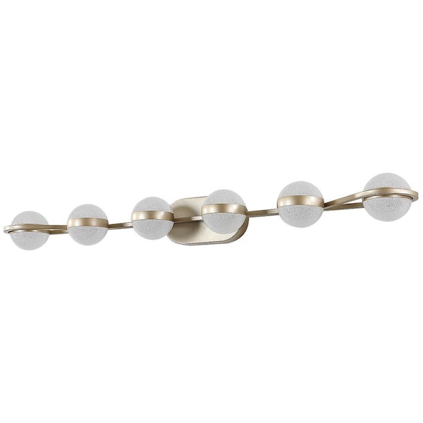 43.3 in. 6-Light Brushed Gold LED Vanity Light Bar with Frosted Glass Shades