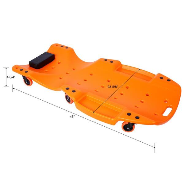 440 lb. Capacity 48 in. Orange Plastic Creeper with Padded Headrest and Dual Tool Trays